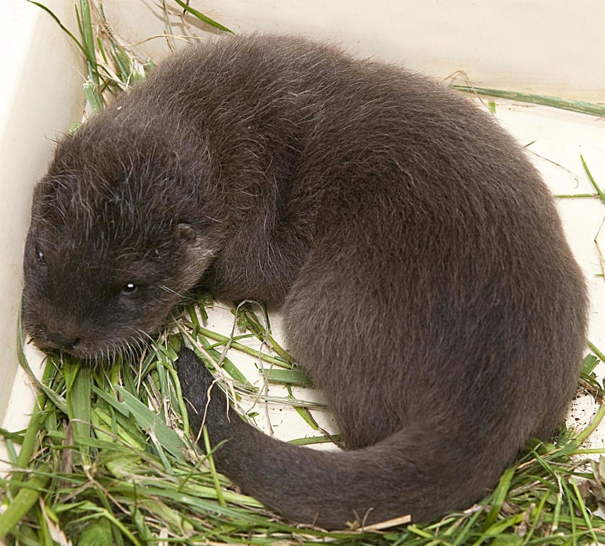 Una cría de nutria europea (Lutra lutra) nació el pasado mes de agosto en el parque Sendaviva. Actualmente pesa más de 250 gramos y pesó cerca de 100 en el momento de su nacimiento.