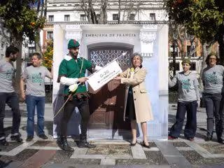 'Robin Hood' ha recorrido este jueves "un largo camino a lo largo y ancho del planeta", con el fin de invitar a Nicolas Sarkozy, que preside el G20, a que siga apoyando la tasa con la que recaudar fondos para luchar contra la pobreza. Mientras en Sevilla, se ha entregado la flecha a la cónsul general de Francia, Pierrette Elston, en Madrid, el embajador francés, Bruno Delaye, la ha recogido en nombre del mandatario galo.