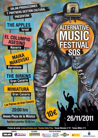 Finalmente, las entradas para asistir al Alternative Music Festival SOS están a la venta en www.entradas.com y en las tiendas Daily Price en Las Palmas de Gran Canaria [Tomás Morales nº 27 y Tomás Miller nº5], a un precio de diez euros.