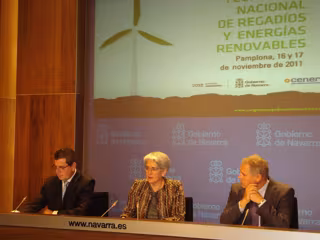 La consejera de Desarrollo Rural, Industria, Empleo y Medio Ambiente del Gobierno foral, Lourdes Goicoechea, ha destacado que Navarra es una comunidad de referencia en energías renovables y en desarrollo de la industria agroalimentaria. La consejera ha estado acompañada en la presentación por Miguel Horta, responsable de Riegos de Navarra, y José Javier Armendáriz, director del CENER.