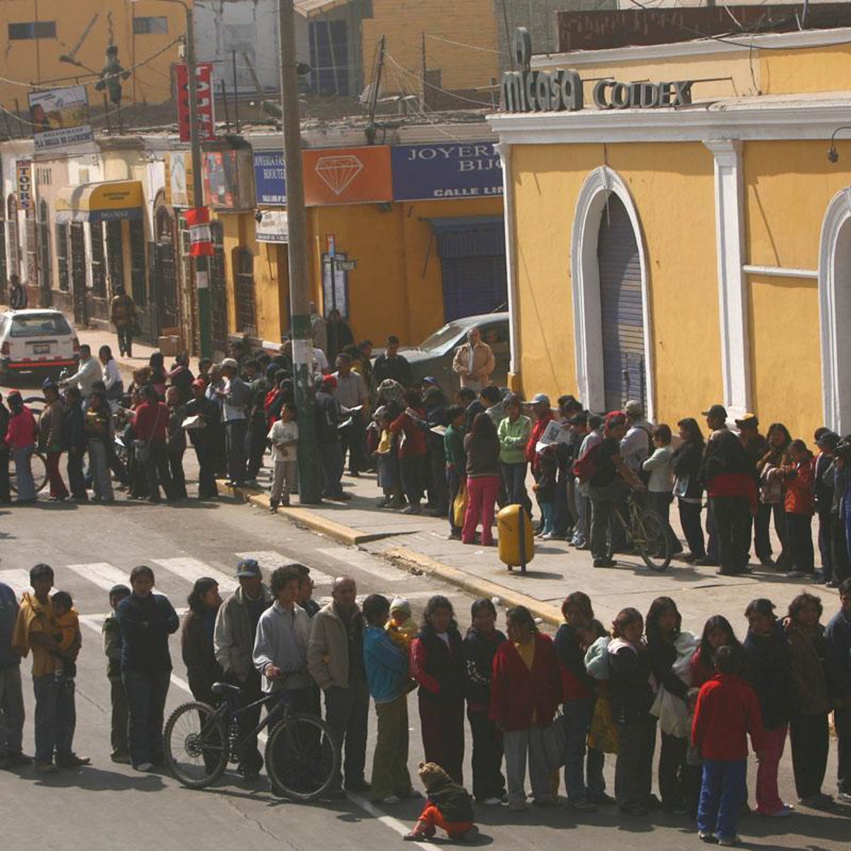 Atrincherados junto a las ruinas de las que fueron sus casas debajo de las que se esconde lo poco que les queda, y alerta para evitar los robos y saqueos, los habitantes de Pisco, una localidad situada a unos 230 kilómetros al sureste de Lima, recibieron la primera ayuda desde que se produjo la catástrofe. Cientos de personas dejaban sus constantes rezos para abalanzarse sobre los camiones que repartían la comida y el resto de ayudas, tanto del Gobierno de Perú como la que llega del exterior, y que están entrando por el pequeño aeropuerto militar de la localidad costera.