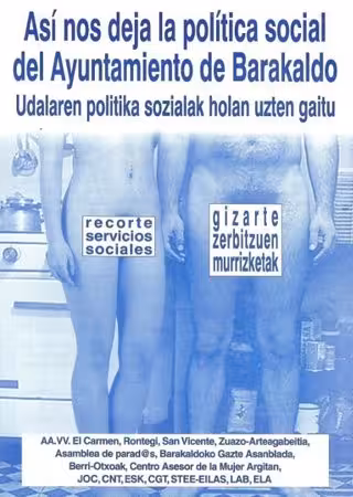 Varios usuarios de servicios sociales del Ayuntamiento de la localidad vizcaína de Barakaldo se han desnudado para pedir que se elaboren "unos presupuestos más justos" y que no haya "más recortes sociales".