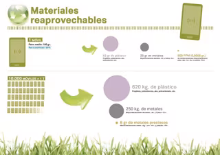 El estudio señala que los usuarios renuevan su móvil cada 18 meses y que cada año se desechan 20 millones de teléfonos en España. Sin embargo, el móvil es uno de los dispositivos de los que se puede extraer mayor cantidad de materias primas reaprovechables, como son un 65 por ciento de sus plásticos; el 25 por ciento de metales comunes y 8 partes por millón de metales preciosos, mientras que el 10 por ciento restante son sustancias irrecuperables, como la fibra de vidrio.