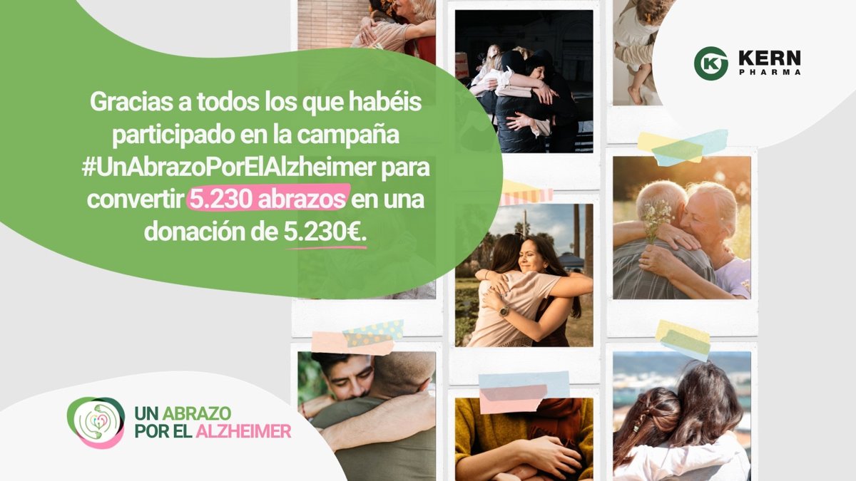 El laboratorio farmacéutico ha donado un euro por cada foto que representara un abrazo subida en la página web de la campaña y en las redes sociales con el hashtag #unabrazoporelalzheimer, informa Kern Pharma en un comunicado este martes.