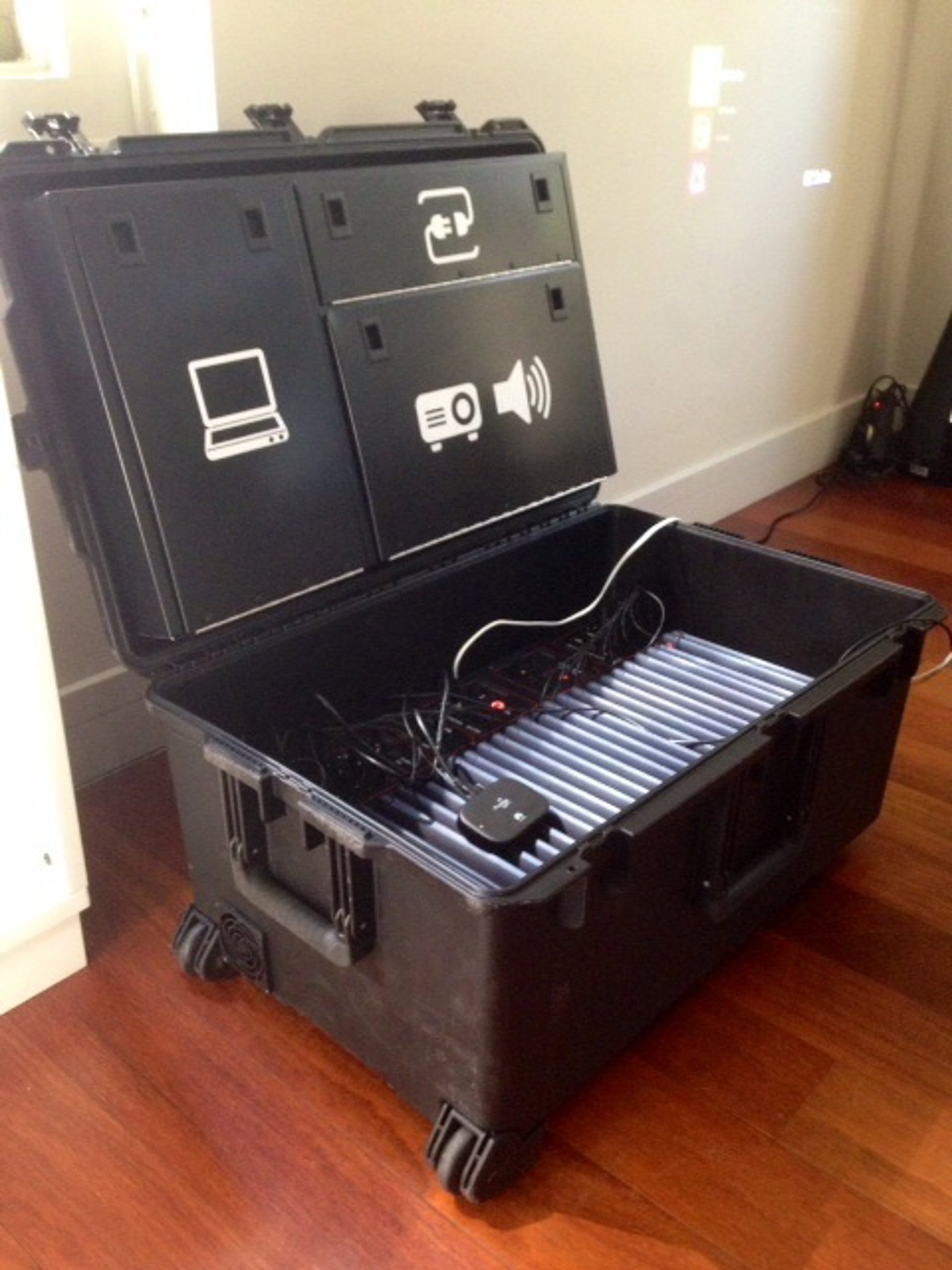 Además, todos los aparatos pueden cargarse de forma simultánea desde una única fuente de electricidad mientras la caja está cerrada. Tras 6 u 8 horas de carga, Instant Classroom puede utilizarse durante un día entero en un aula sin acceso a electricidad.