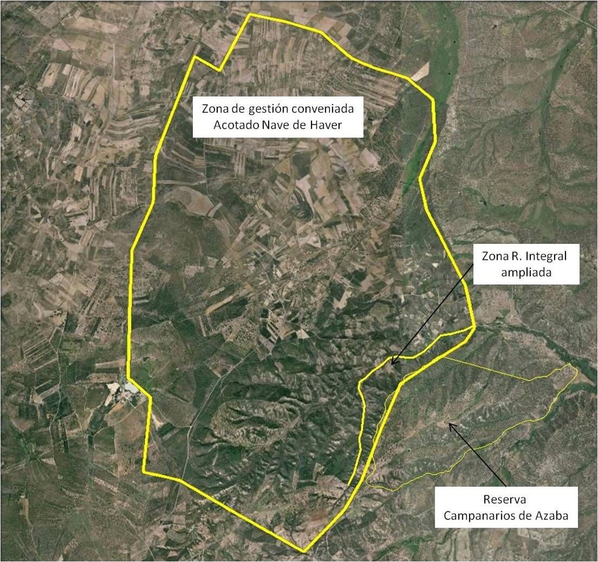 Dicho esto, ha explicado que "el modelo de gestión que desde 2008 realiza la FNYH en 520 hectáreas de territorio, adquirido para crear la Reserva Biológica Campanarios de Azaba, en Salamanca, se ha ampliado a las 4.500 hectáreas colindantes, tras el acuerdo alcanzado con el Coto de Caza de Nave de Haver, en Portugal, de las que 250 hectáreas serán gestionadas como reserva integral sin caza por acuerdo tomado entre los cazadores y los ecologistas".