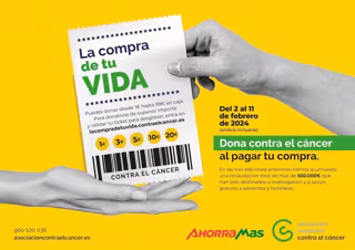 La cadena de supermercados Ahorramas se sumará por cuarto año consecutivo a la campaña 'La Compra de tu Vida' de la Asociación Española contra el Cáncer (AECC) para recaudar fondos destinados al apoyo de la investigación contra esta grupo de enfermedades y ofrecer servicios gratuitos de apoyo a pacientes y familiares.