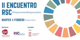 La Asociación de Jóvenes Empresarios de la Región de Murcia (AJE) ha organizado el II Encuentro Responsabilidad Social Corporativa, que se celebrará el próximo 4 de febrero, a partir de las 9.00 horas, con la colaboración de RSCreativa y el Ayuntamiento de Murcia.