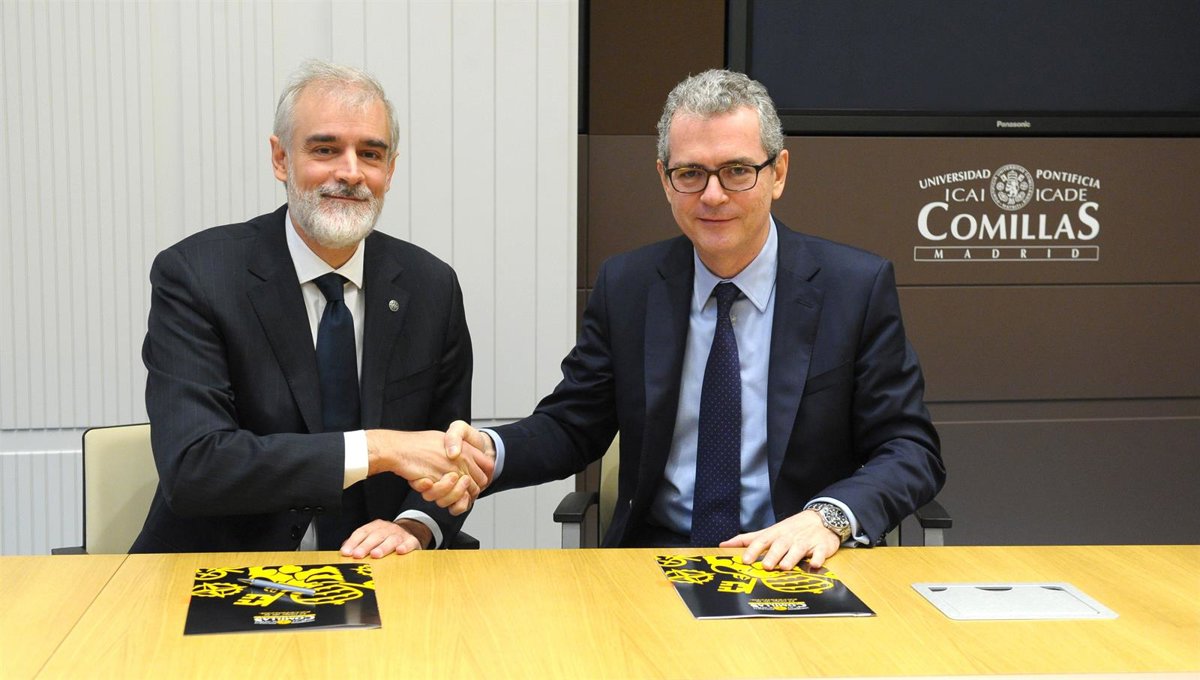 El presidente de Inditex, Pablo Isla, y el rector de la Universidad Pontificia Comillas ICAI-ICADE, Julio L. Martínez, han firmado este jueves, 7 de abril, un convenio de colaboración para la creación de la Cátedra de Refugiados y Migrantes Forzosos, según detallan sus impulsores.