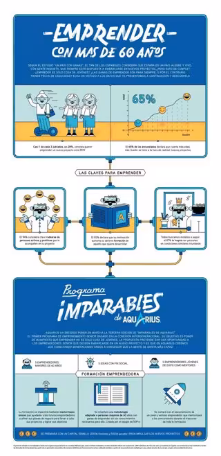En este sentido, el programa es fruto de el estudio 'Un país con ganas', impulsado por Aquarius, en el que se destaca que una de cada tres personas mayores de 55 años tiene intención de emprender este año.