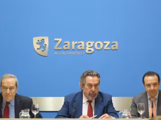 El alcalde de Zaragoza, Juan Alberto Belloch; el director general de la Fundación "la Caixa", Jaime Lanaspa, y el director territorial de "la Caixa" en Navarra, Aragón y La Rioja, Raúl Marqueta, han firmado sendos convenios de colaboración que contemplan el impulso de actuaciones sociales en torno a la lucha contra la pobreza infantil y en favor de la promoción de la convivencia ciudadana intercultural.