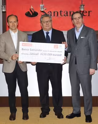 El acuerdo ha sido firmado por el vicepresidente primero de UNICEF Comité Español, Juan Ramón García Secades, y el consejero delegado de Santander España, Rami Aboukhair. También ha asistido el consejero delegado de Santander México, Hector Grisi.