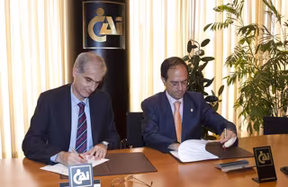 El presidente de Caja Inmaculada (CAI), Juan María Pemán, y el presidente de la Fundación DFA, Armando Carcas, han firmado un acuerdo por el que la Obra Social de CAI aporta 81.000 euros para comprar dos microbuses adaptados que reforzarán el servicio regular de transporte que facilita la fundación a personas con discapacidad.