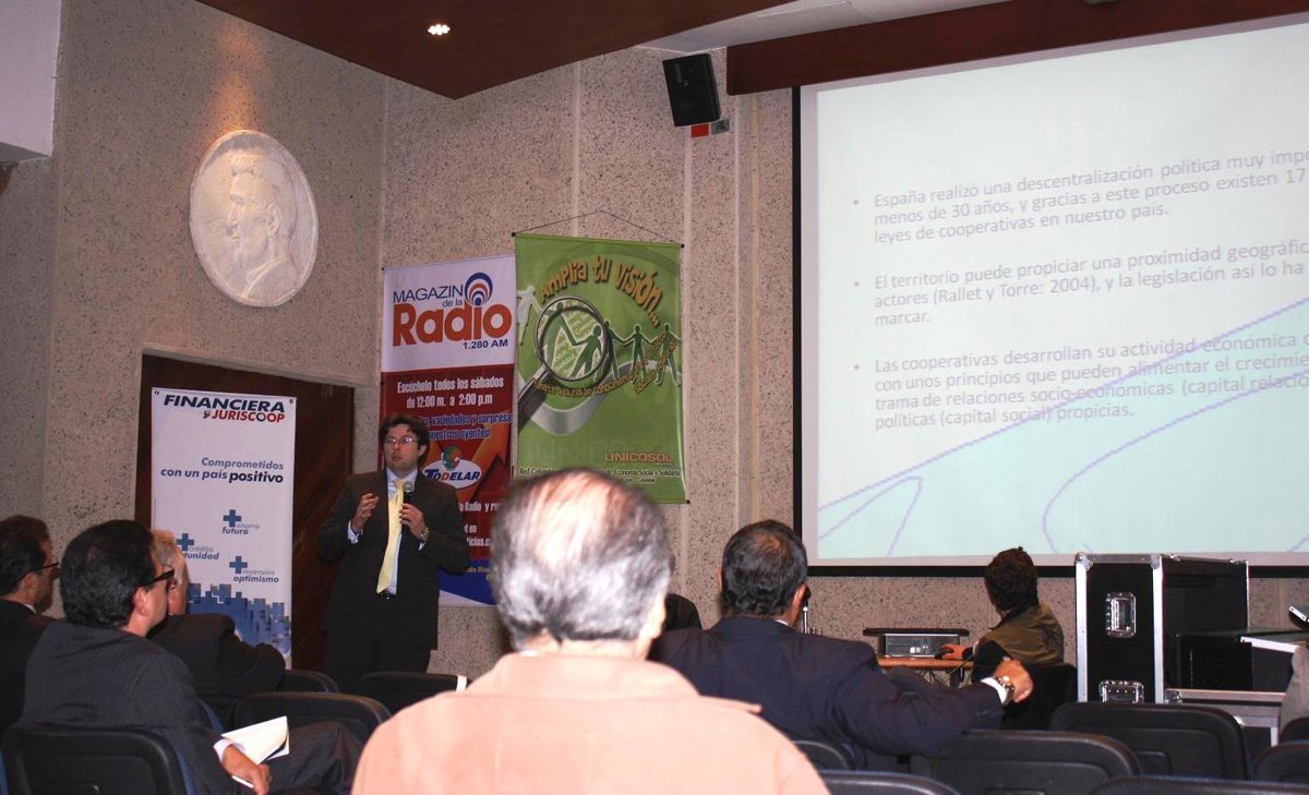 Además, impartió una conferencia para los funcionarios públicos del Departamento Administrativo Nacional de Economía Solidaria de la República de Colombia, ante un foro de más de 70 funcionarios públicos dedicados a la creación de valor y proyectos en base a la Economía Social para el Desarrollo Local de Colombia. Ante ellos expuso la necesidad de crear nuevas rutas de colaboración entre los sectores cooperativos colombiano y español para el intercambio comercial como vías propias de comercialización, un método innovador que, lejos de la gran distribución comercial, ayudaría al sector cooperativo a crear sus nuevos mercados a través de canales de comercialización propios.