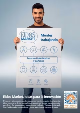 Accediendo a la plataforma 'Eidos Market' a través de la intranet corporativa de Enel, los empleados pueden presentar propuestas innovadoras para resolver las dificultades planteadas por la dirección. Cualquier empleado puede comentarlas, enriquecerlas con sus propias aportaciones y ofrecer una valoración.