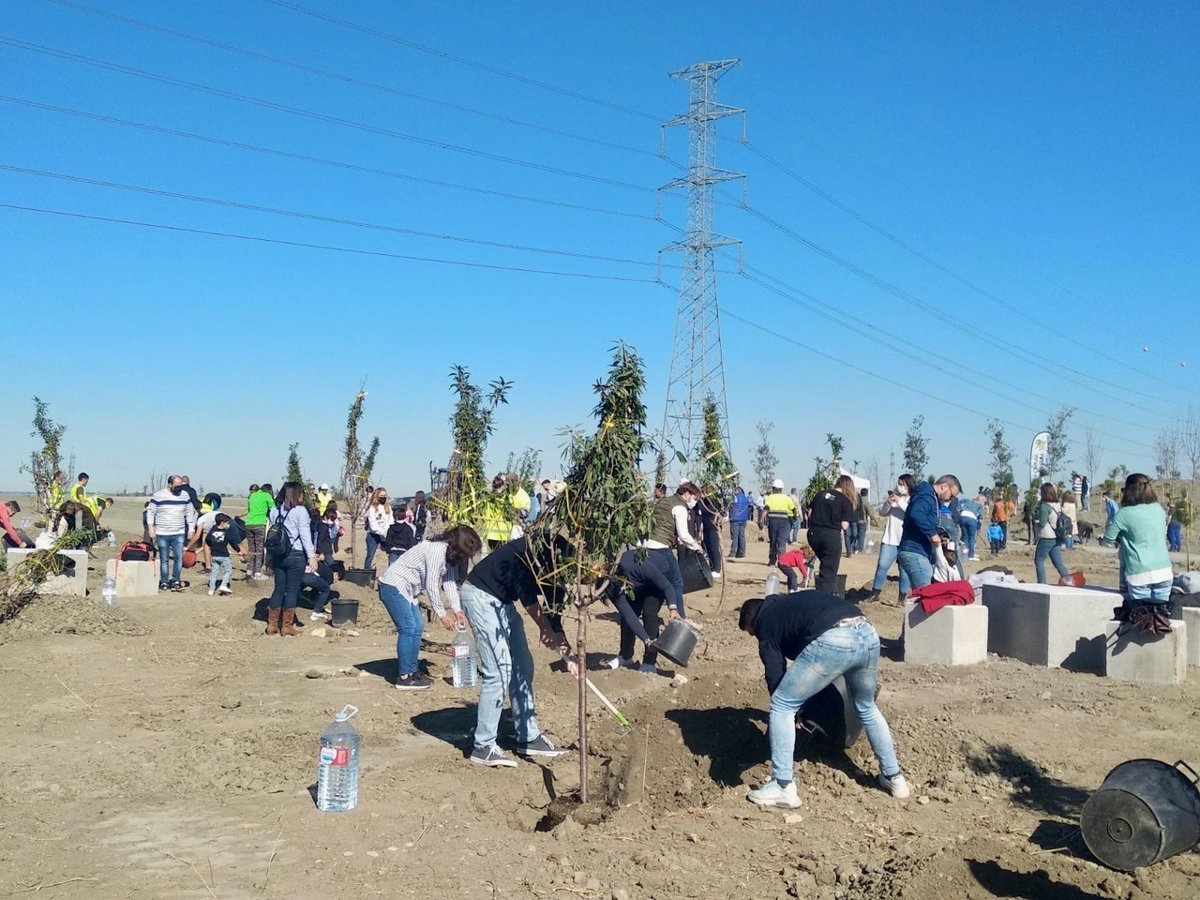 La primera plantación del proyecto de forestación de 500 árboles y 3.800 arbustivas de especies autóctonas en una superficie de 65.000 metros cuadrados, se celebró este sábado en el parque periurbano de la Plataforma Central Iberum.