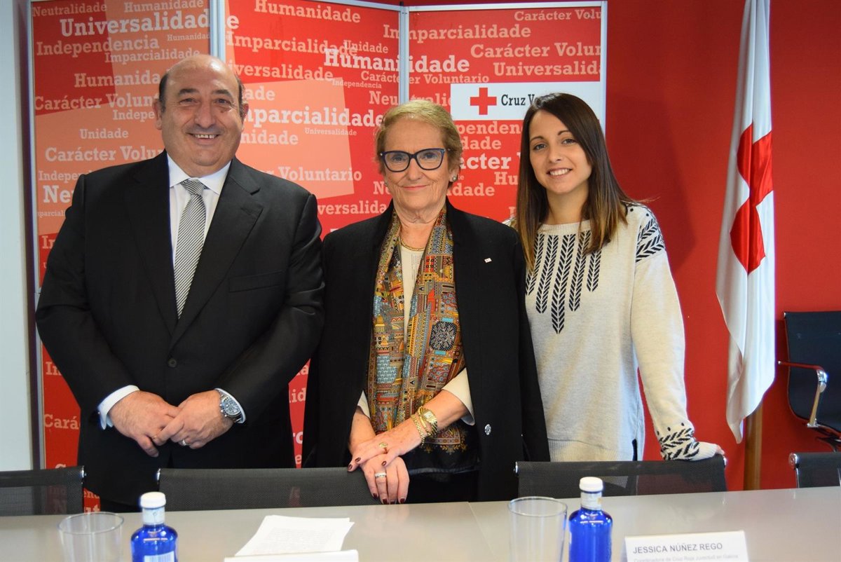 La presidenta de Cruz Roja en Galicia, Carmen Colmeiro, y el director de Grupo DIA en Galicia, Javier Segura, han presentado este martes, 13 de diciembre, un acuerdo de colaboración para garantizar que 700 niños y niñas cuyas familias atraviesan situaciones de dificultad económica puedan tener una merienda.
