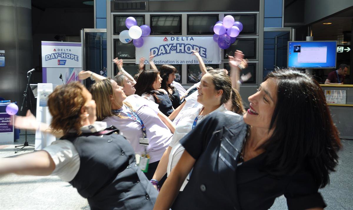 Los empleados de Delta Air Lines han recaudado fondos a favor de la Asociación Americana contra el Cáncer con una serie de actividades realizadas en un centenar de aeropuertos de todo el mundo, entre ellos, el aeropuerto Adolfo Suárez Madrid-Barajas.