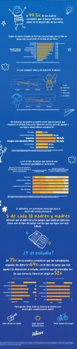 Infografía del I estudio sobre los beneficios del juego y la actividad física en niños', desarrollado por Galletas Príncipe junto a la psicóloga Silvia Álava y realizado con Ipsos - MONDELEZ