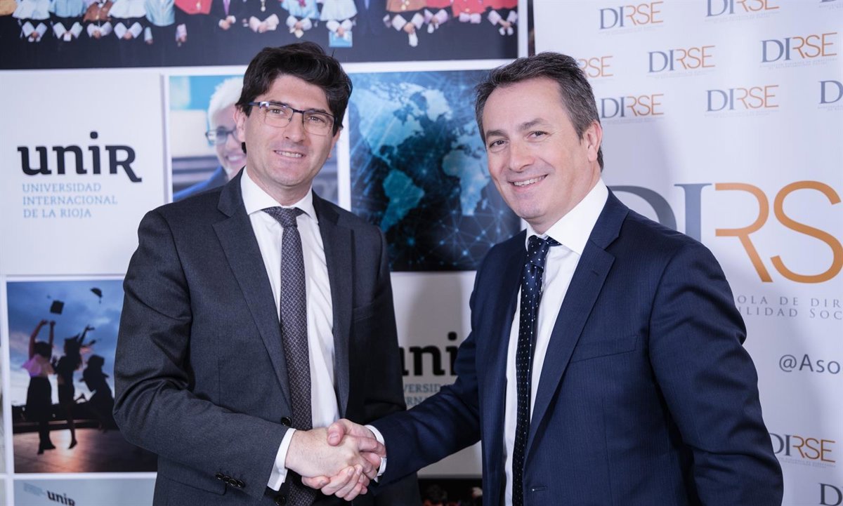 El presidente de la Asociación Española De Directivos de Responsabilidad Social (DIRSE), Antoni Ballabriga, y el consejero de la Universidad Internacional de la Rioja (UNIR), Luis Usera, han firmado un convenio de colaboración por el cual los 'dirses' podrán cursar los estudios universitarios y postuniversitarios de la UNIR con un 10% de descuento sobre sus tarifas, según han informado ambas instituciones.