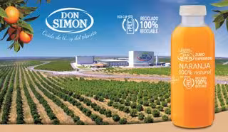 Don Simón ha lanzado una nueva botella más ligera elaborada al 100% con plástico reciclado rPET y 100% reciclable, que reduce la huella de carbono en un 80% ya que, por cada millón de unidades de este envase, se ahorra el uso de 18 toneladas de plástico virgen y se reduce la emisión de 30 toneladas de CO2 al año, según detalla la compañía.