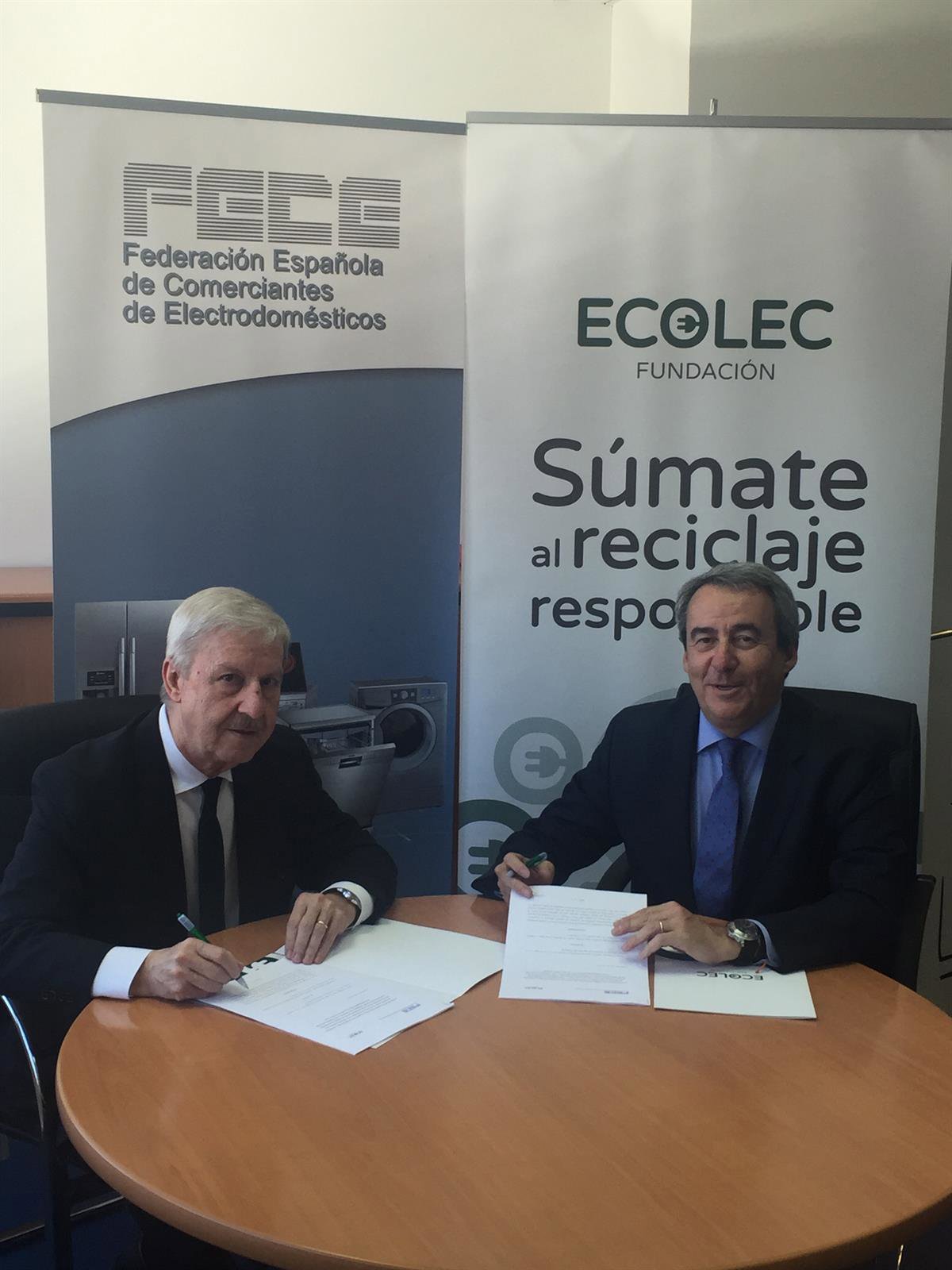 Los presidentes de ambas entidades, Thierry Villalongue por parte de Ecolec, y José María Verdeguer, en representación de FECE, han firmado el pasado 6 de abril el acuerdo para los próximos dos años, con el objetivo de continuar con la labor que viene llevándose a cabo de forma conjunta y que ha supuesto un incremento del 50% de la recogida de RAEE en los comercios de proximidad en el último ejercicio.