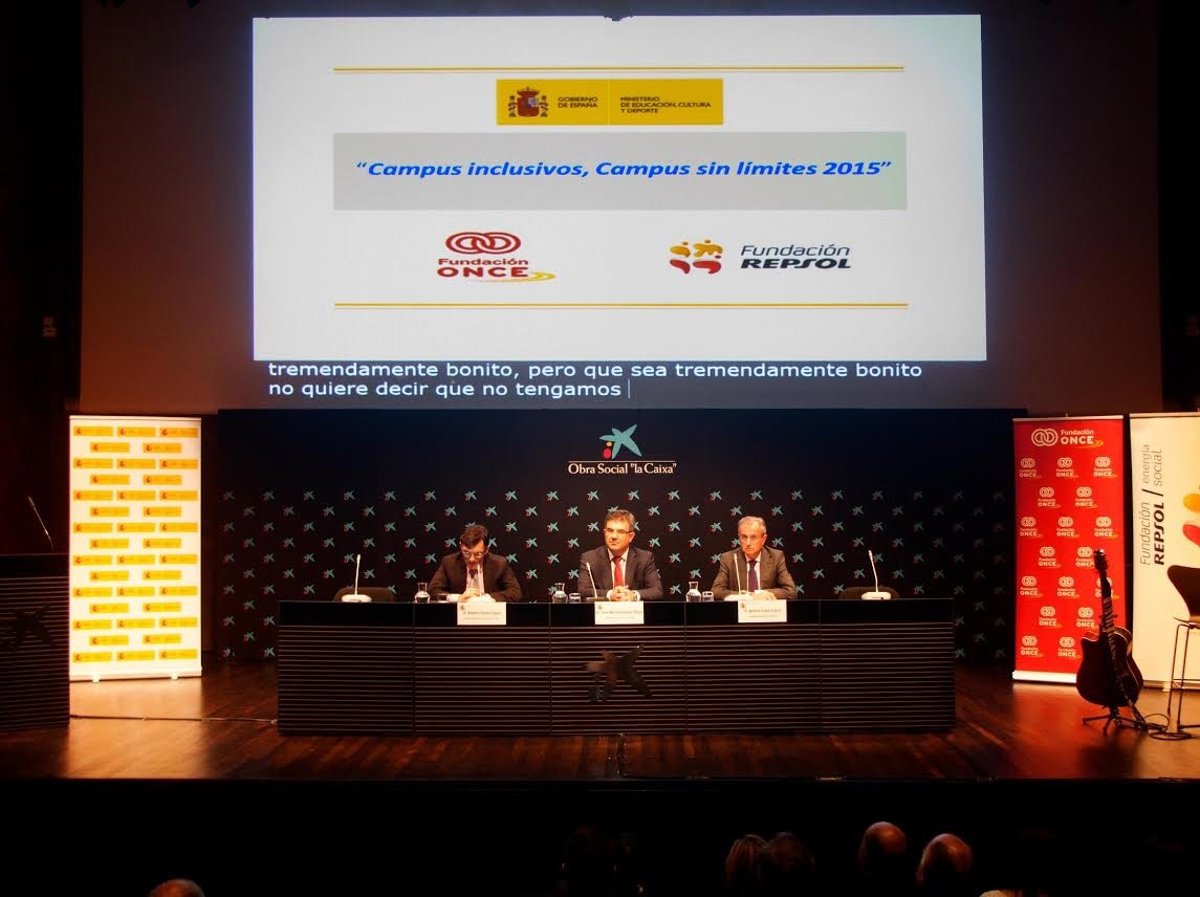 El secretario general de Universidades, Juan María Vázquez, acompañado por el vicepresidente Ejecutivo de la Fundación ONCE, Alberto Durán López, y el vicepresidente de Fundación REPSOL, Ignacio Egea Krauel, ha presentado una nueva edición del programa 'Campus inclusivos, campus sin límites', en un acto que se ha celebrado este jueves en la sede de la Fundación La Caixa, en Madrid.