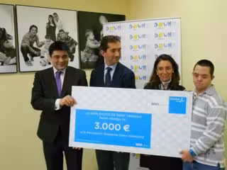 Los empleados de BBVA en la capital vallisoletana han donado hoy 3.000 euros a la Asociación Down Valladolid. El donativo corresponde al incentivo obtenido por los trabajadores de la entidad en la campaña que desarrolló Sanitas el último cuatrimestre del año 2011.