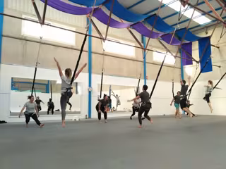 De este modo, explican que hacer deporte se convierte en volar, flotar, correr o bailar; todo ello suspendido de una cuerda elástica enganchada a la espalda por un arnés, un ejercicio muy aeróbico y dinámico que implica un ejercicio cardiovascular intenso, que quema calorías y tiene un menor impacto en las articulaciones.