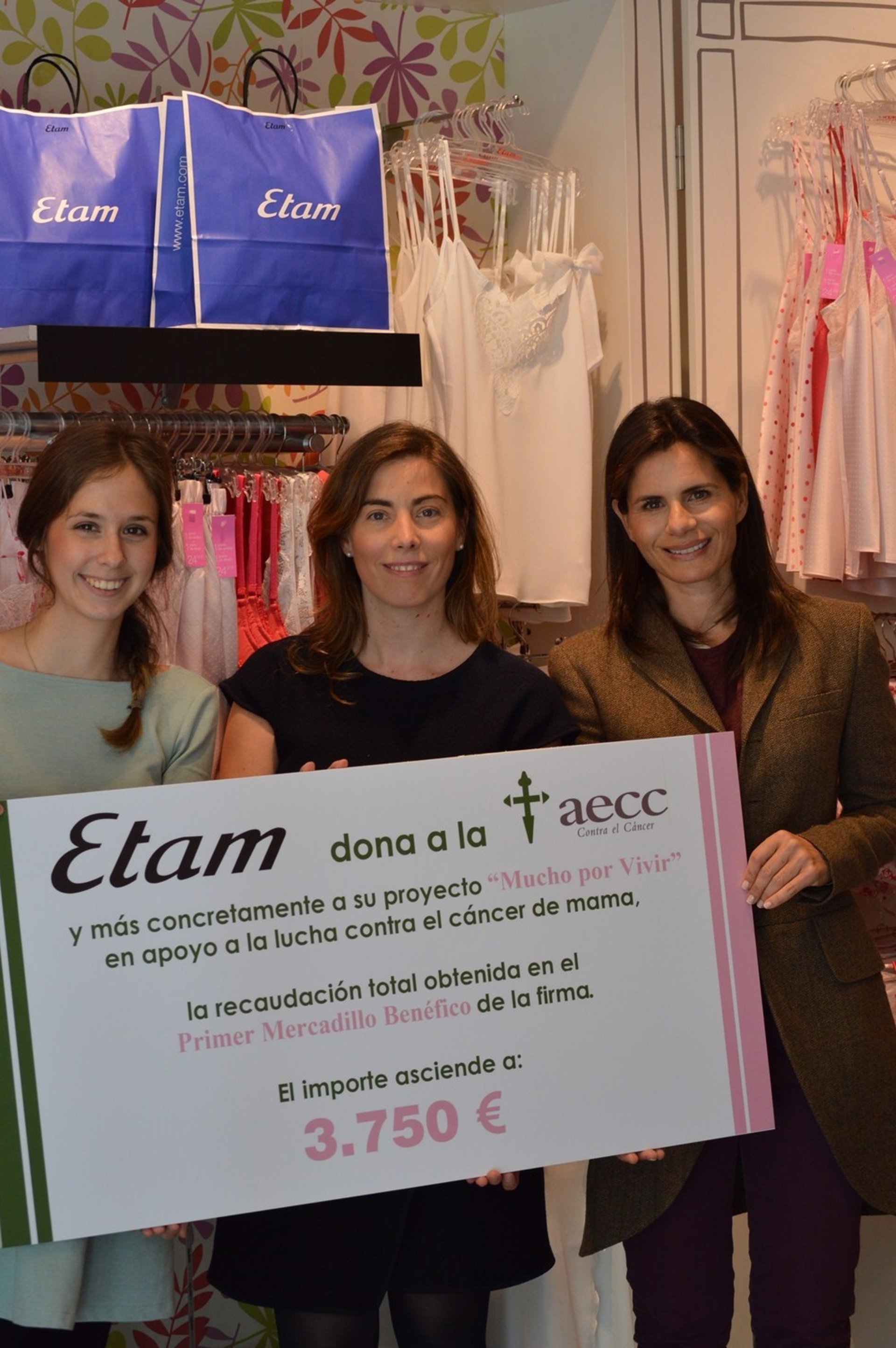 La firma de lencería Etam ha recaudado un total de 3.750 euros para apoyar la lucha contra el Cáncer de Mama en el proyecto 'Mucho por Vivir' a través de la realización del 'I Mercadillo Benéfico' de la compañía en España, que se realizó en Madrid el pasado mes de abril.