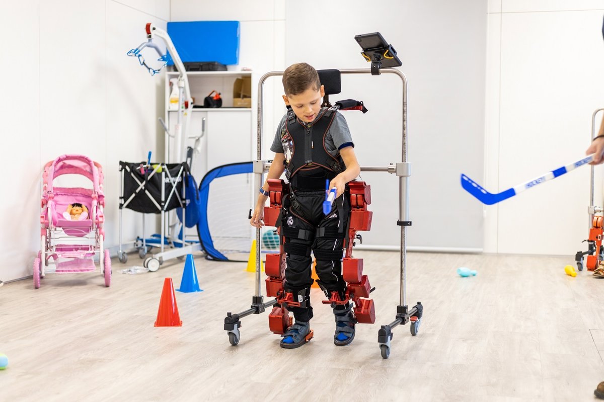 El dispositivo ATLAS 2030 es el primer exoesqueleto pediátrico del mundo. Así, con 8 articulaciones que imitan el funcionamiento del músculo natural adaptando su rigidez de forma inteligente a distintas patologías permite caminar a niños que no tienen o han perdido la capacidad de marcha.