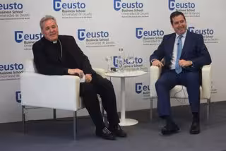 El de Iceta y Garamendi ha sido el segundo diálogo del 'Ciclo Humanismo y Competitividad' puesto en marcha por Deusto Business School con la intención de convertirse en un encuentro que genere contenidos relevantes y efectivos para divulgar y concienciar el humanismo como fuente esencial de competitividad.