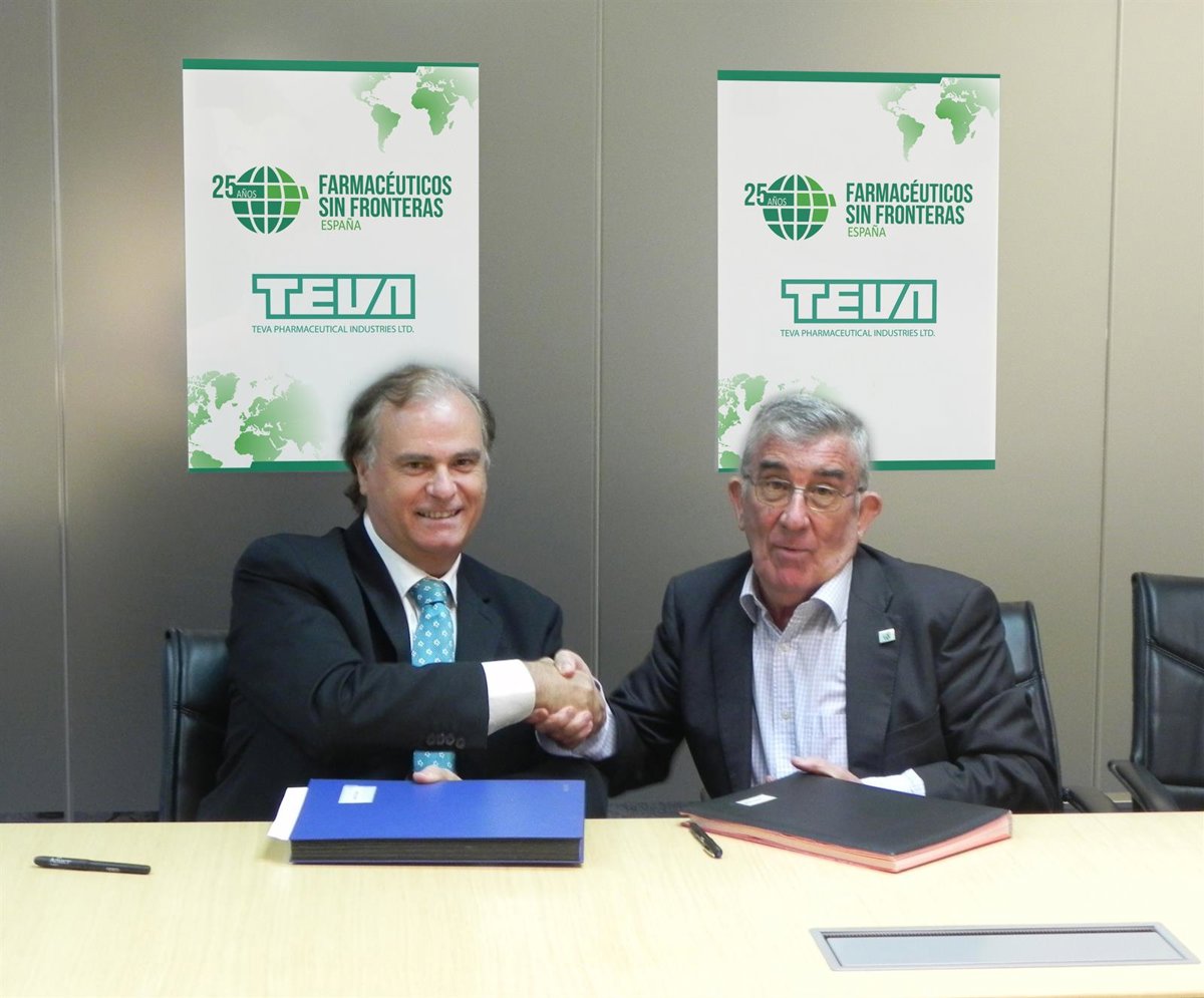 El presidente de Farmacéuticos Sin Fronteras, Rafael Martínez Montes y el director general de TEVA, Carlos Teixeira, han firmado un acuerdo mediante el cual la compañía farmacéutica será patrocinadora exclusiva del evento conmemorativo del 25 Aniversario de la ONG que se celebra el próximo 22 de septiembre.