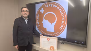La certificación 'Espacio Cerebroprotegido' se obtiene tras una formación online desarrollada por la Fundación Freno al Ictus, en colaboración con la Sociedad Española de Neurología (SEN) a través de su Grupo de Estudio de Enfermedades Cerebrovasculares (GEECV). Esta iniciativa forma parte del proyecto "Brain Caring People", que cuenta con el aval social de la propia sociedad científica y con el apoyo de la Asociación Española de Especialistas en Medicina del Trabajo (AEEMT) y la Asociación Española de Servicios de Prevención Laboral (AESPLA).
