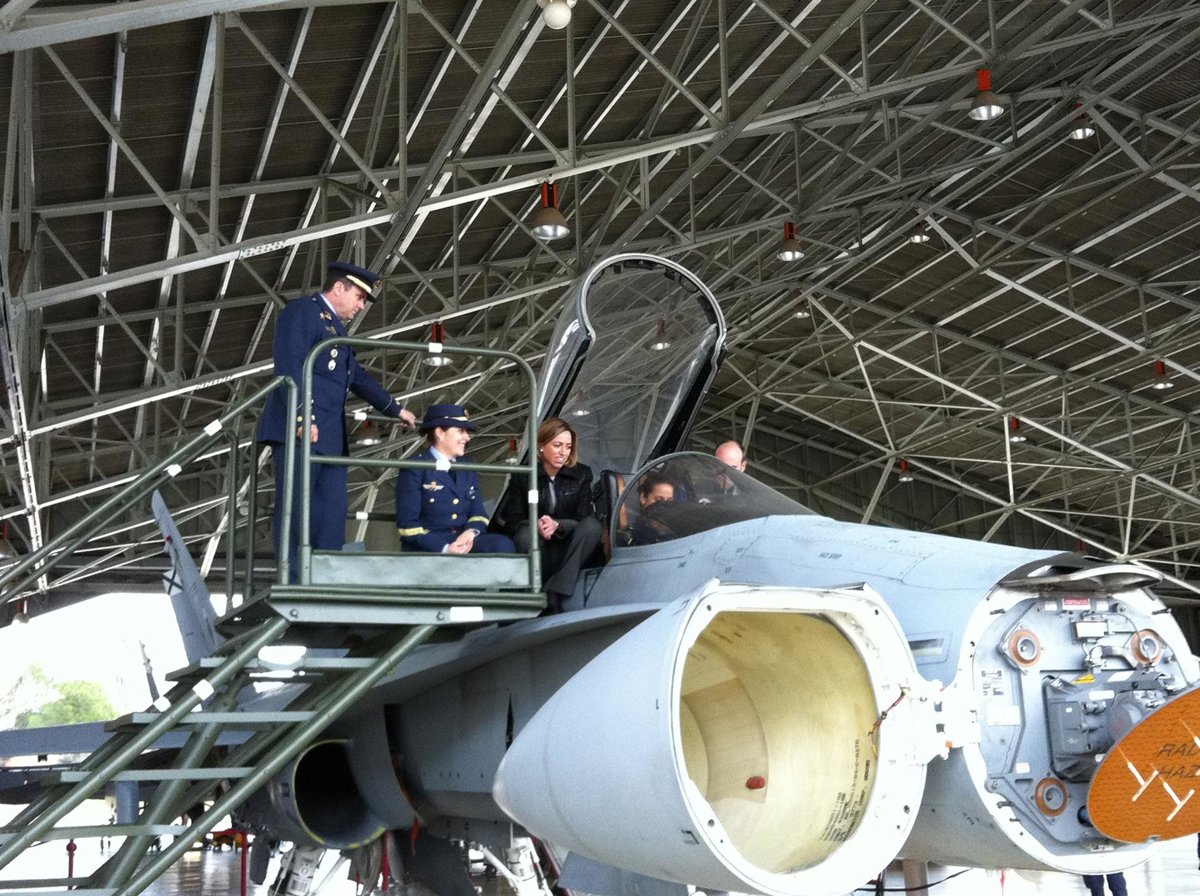 Tras la reunión extraordinaria del Observatorio, Chacón, junto al subsecretario de Defensa, Vicente Salvador, y el Jefe del Estado Mayor del Ejército del Aire (JEMA), general José Jiménez, ha visitado uno de los hangares del Ala 12 del Ejército del Aire, donde asistió al trabajo diario que las mujeres y hombres de dicha unidad realizan para el mantenimiento y montaje de las distintas configuraciones de los aviones, y al aterrizaje de dos aviones de combate F-18 pilotados por el capitán Carlos Pérez Ramírez y por la teniente Rocío González Torres.