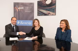 La Fundación Cultural Banesto y el Teatro de la Maestranza de Sevilla han firmado este miércoles el convenio de patrocinio correspondiente a la temporada 2012-2013, con la presencia de la concejal de Cultura, Educación, Deportes y Juventud del Ayuntamiento de Sevilla, María de Mar Sánchez Estrella, como presidenta del consejo de administración del teatro y el director territorial para Andalucía y Canarias del Banco Español de Crédito, Alberto Delgado.