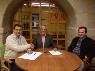 La Fundación Caja Rioja aporta 1.500 euros al trabajo que desarrolla el Hospital del Santo de Santo Domingo de la Calzada. Así lo han suscrito en un convenio de colaboración el director de la Fundación Caja Rioja, Arturo Colina, Javier Azpeitia y Francisco Suárez, presidente y vicepresidente de la Fundación Hospital del Santo.