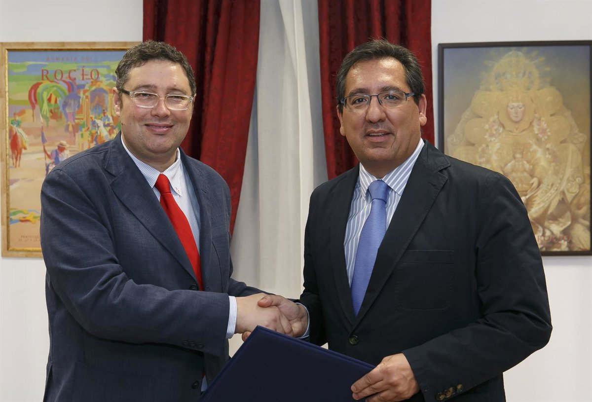 El presidente de la Fundación Cajasol, Antonio Pulido, y el presidente de la Pontificia, Real e Ilustre Hermandad Matriz de Nuestra Señora del Rocío de Almonte, Juan Ignacio Reales, han firmado un acuerdo de colaboración por el que ambas instituciones comenzarán a trabajar de la mano para la realización del proyecto de creación del Museo del Rocío, que se ubicará en el propio Santuario del Rocío.