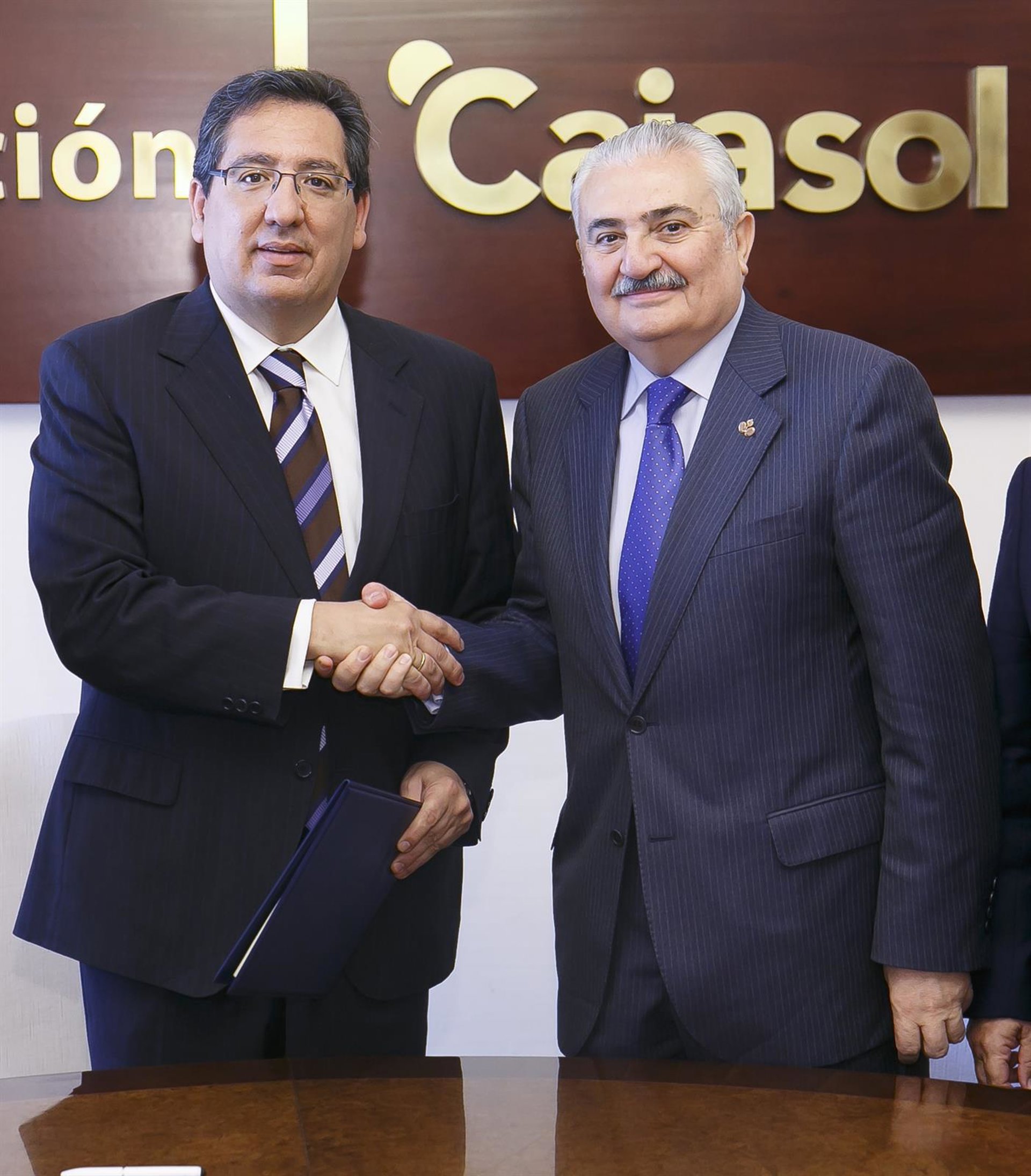 El presidente de la Fundación Cajasol, Antonio Pulido, y el presidente del Consejo General de Hermandades y Cofradías de Sevilla, Carlos Bourrellier, han rubricado el acuerdo de colaboración que ambas instituciones mantienen desde hace años, y que reflejan la labor que desempeñan en dentro del Proyecto Fraternitas en la zona del Polígono Sur con el fin de erradicar la exclusión social, promoviendo actividades e iniciativas que favorezcan la igualdad y la integración social de los habitantes de la zona.