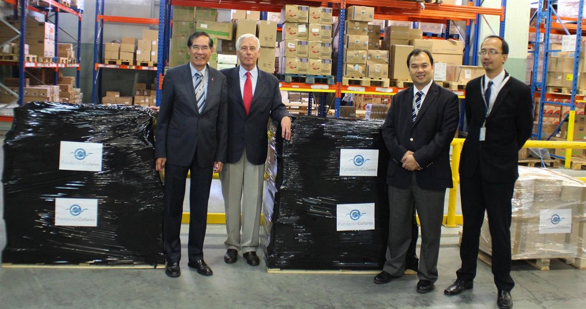 La Fundación Cofares ha hecho entrega de una donación de 174 kilos de medicinas al embajador de Filipinas, Don Carlos C. Salinas, durante una visita a las instalaciones del Grupo Cofares en su almacén de Fuencarral (Madrid).