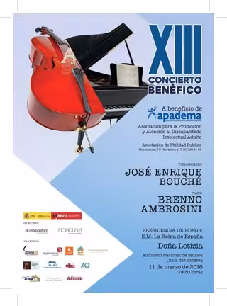 Este concierto, que cuenta con la presidencia de honor de S.M. la reina de España, Doña Leticia, se celebrará el 11 de marzo en la Sala de Cámara del Auditorio Nacional de Música en Madrid. Este año, la actuación correrá a cargo de los músicos José Enrique Bouché, al violonchelo, y Breno Ambrossini, al piano, según informa la Fundación Divina Pastora.