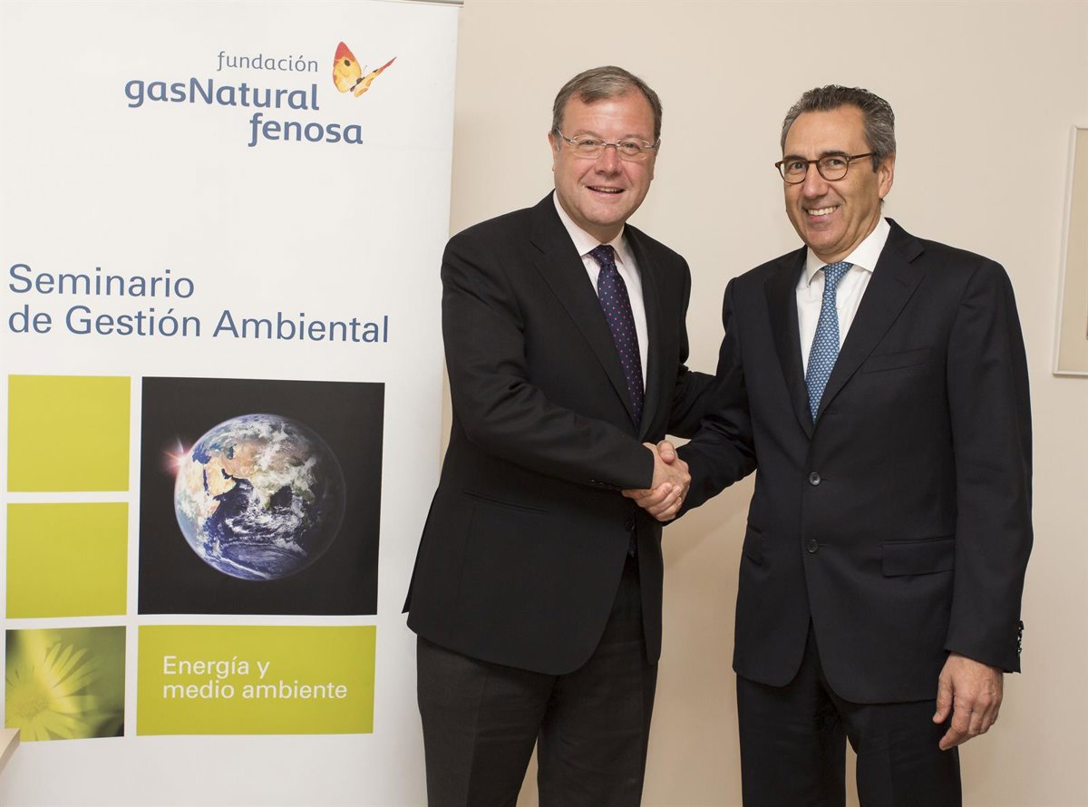 El consejero de Fomento y Medio Ambiente, Antonio Silván, y el director general de la Fundación Gas Natural Fenosa, Martí Solà, han sido los encargados de firmar el convenio por el que ambas partes se comprometen a cooperar en la difusión de la cultura de la eficiencia energética, la promoción del ahorro energético como vector de competitividad y la concienciación sobre la importancia de protección del medio ambiente.