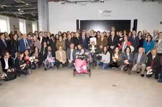 El acto de entrega del donativo, celebrado en el Espacio Fundación Telefónica, ha contado con la presencia de José Velasco, presidente de la Fundación Inocente, Inocente; los presentadores Juanma Iturriaga y María Casado; Marian Juste, directora de voluntariado corporativo de Fundación Telefónica; Carmen Marín, productora de TVE, así como los representantes de las entidades beneficiarias.