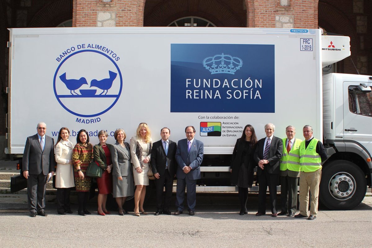 La Fundación Reina Sofía y la Asociación Internacional de Diplomáticos de España (AIDE) han entregado al Banco de Alimentos de Madrid de un camión congelador de 9.000 kilos de carga para apoyar el trabajo de recogida de alimentos que realiza este organismo, para su posterior distribución entre 450 entidades benéficas.