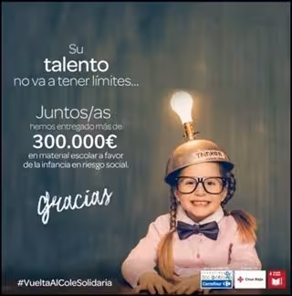 Este año, la 'Vuelta al Cole Solidaria 2025' se celebró durante el mes de septiembre en 203 centros Carrefour de toda España y contó con la colaboración de más de 4.500 voluntarios de Cruz Roja, apoyados por el voluntariado de Fundación Solidaridad Carrefour (siendo las Asambleas Locales de Cruz Roja las encargadas de distribuir dichos recursos entre las familias beneficiarias de todo el territorio nacional).