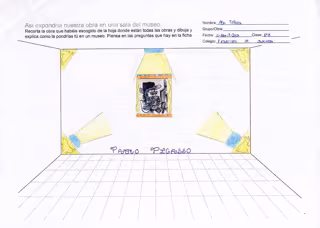 A través de divertidas dinámicas y de técnicas variadas como el collage, la fotografía o la pintura automática, los ejercicios buscan llamar la atención sobre aspectos relevantes de cada obra. Esculpir el vacío en una patata a propósito de Chillida, componer un autorretrato con fotografías de distintas edades a la manera cubista o evocar el misterio a través de objetos cotidianos emulando a Magritte son solo algunos ejemplos. Son en total 18 artistas de muy diversas épocas, estilos y formatos: Chillida, Picasso, Luis Fernández, Helena Almeida, Lhote, Magritte, Juan Muñoz, Tàpies, Matta, Feito, Juan Gris, Saura, Úrculo, Bernd y Hilla Becher, Fontcuberta, Gursky, Bleda y Rosa y Delvaux.