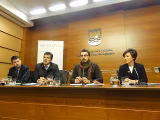 El diputado de Política Social de Gipuzkoa, Ander Rodríguez, y el director general adjunto de Tecnalia, Iñaki San Sebastián, y la gerente de Uliazpi, Arantza Agiriano, han dado cuenta este viernes del acuerdo suscrito entre estas entidades para colaborar en el desarrollo de tecnologías de apoyo para personas con discapacidad intelectual.
