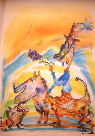 En este sentido, la muestra pictórica está integrada por 27 pinturas, dibujos y grabados que han sido cedidos solidariamente por sus autores que son artistas iberoamericanos del mundo de la música. Esta fundación está constituida por una red de personas vinculadas a la cultura, fundamentalmente músicos y actores, comprometidos con la construcción de un mundo más justo y con la lucha contra la pobreza que afecta a la infancia. La exposición ha estado expuesta en diferentes lugares de España: Valladolid, Rueda, Madrid (Casa de América), Pamplona, Málaga (Ayuntamiento), Granada y Almuñecar.