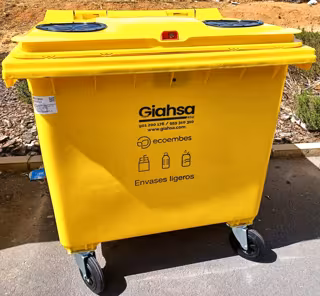 Contenedor de recogida selectiva de envases ligeros (EELL) en el sector comercial de Giahsa. - GIAHSA