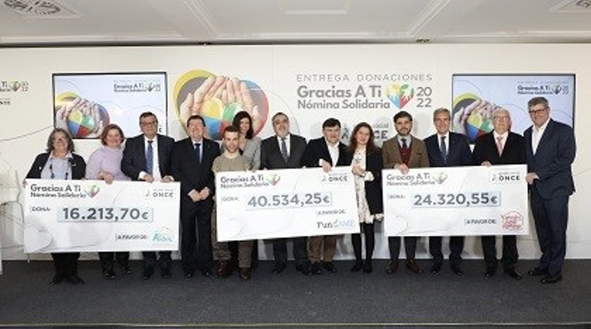 Según sus impulsores, el acto de entrega de los cheques solidarios del programa ha reunido a trabajadores de todas las áreas ejecutivas del Grupo Social ONCE (ONCE, Fundación ONCE e ILUNION) en un evento celebrado en el Palacete de los Duques de Pastrana en Madrid.